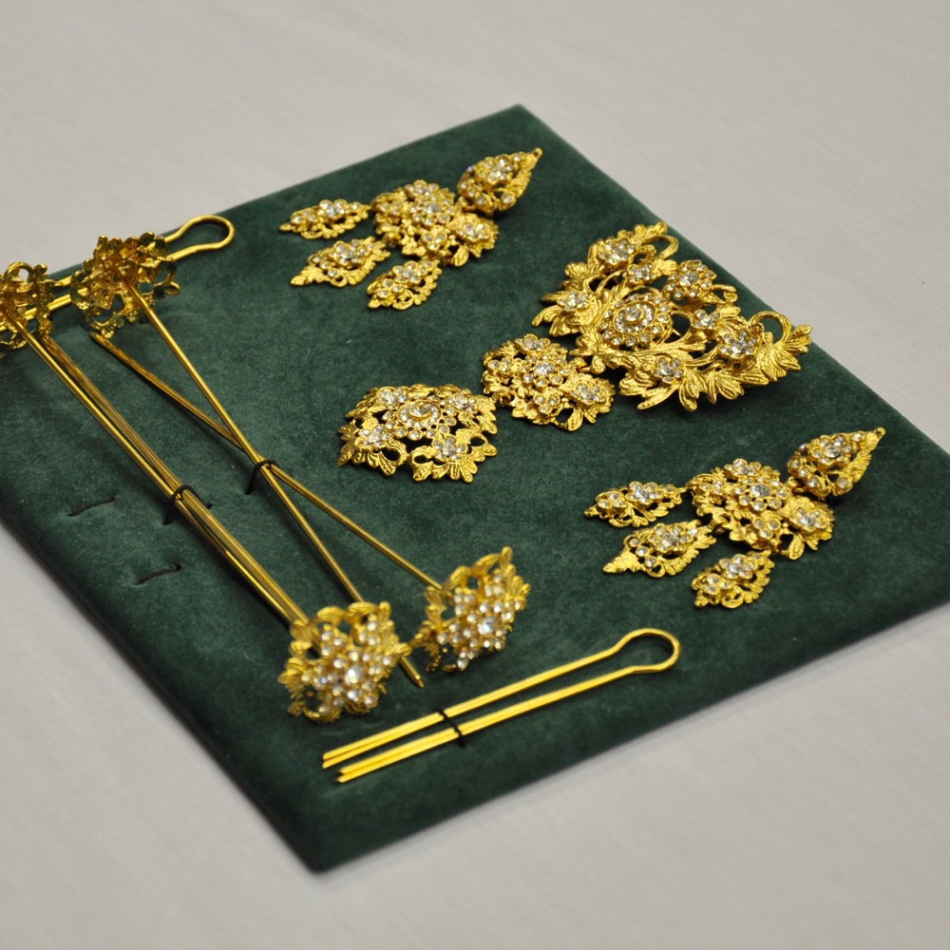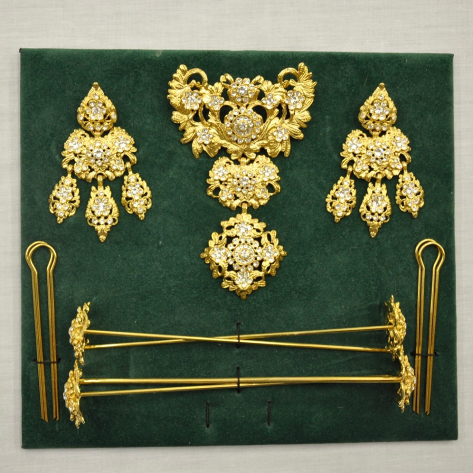 Este Aderezo fallera forma clásica "de la Virgen" con cristales esta compuesto de:
