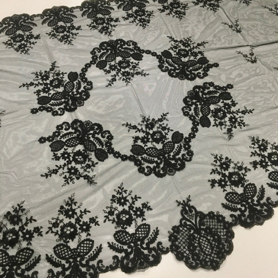 La mantilla Media Luna 15861 negra de Adriluc es el accesorio perfecto para complementar tu traje de fallera, un vestido tradicional o una recreación de época. Confeccionada en tul bordado de alta calidad, esta mantilla presenta un elegante bouquet floral central, aportando sofisticación y un toque de distinción.