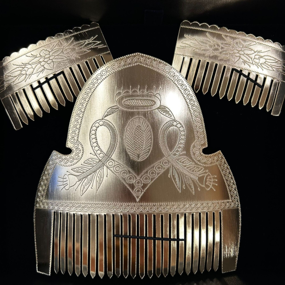El conjunto incluye una peineta trasera adulta (a partir de 9 años) y dos peinetas laterales adultas, elaboradas con materiales de alta calidad para asegurar comodidad, durabilidad y un ajuste perfecto.